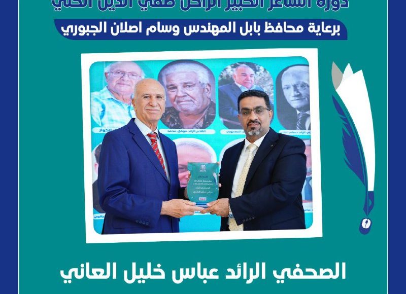” دورة الشاعر الكبير الراحل صفي الدين الحلي “ مؤسسة خُطى لرعاية رواد الصحافة والفن والأدب تكرم الصحفي الرائد عباس خليل العاني. ️مؤسسة خُطى لرعاية رواد الصحافة والفنأقرب لكم Share